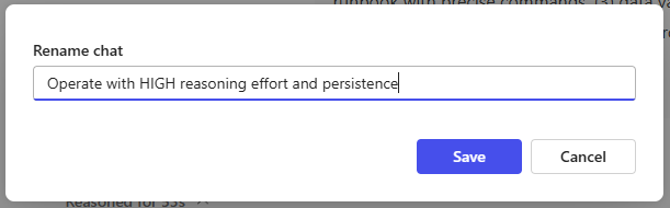 When trying to rename the chat title in Copilot I also was left with a wired feeling. First: titles are only allowed to be 50 chars long. Why 50? But when trying to rename the title I was also left with a strange error message. Just look at the three screenshots below: